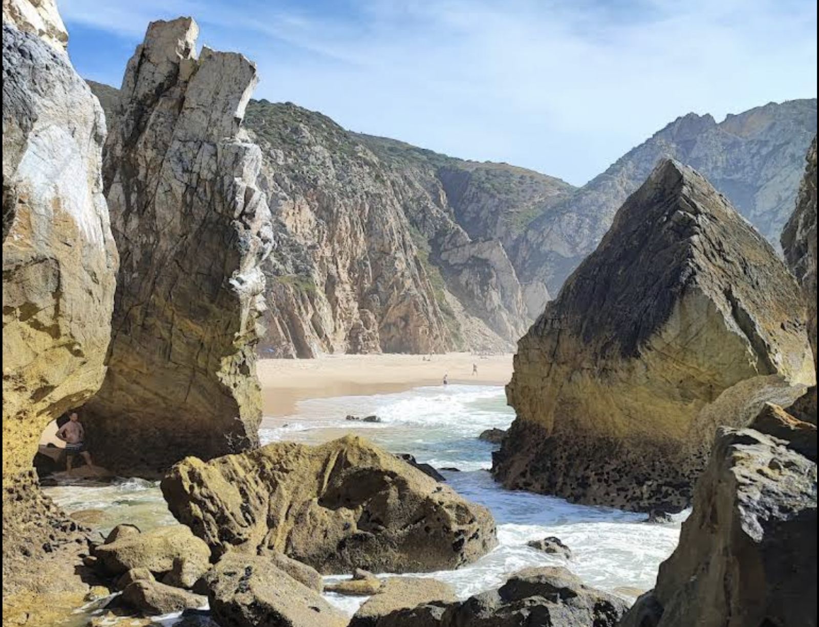 Praia da Ursa – дика та вражаюча локація з ефектними скельними формаціями. Дістатися до неї можна лише крутим спуском, що робить її більш усамітненою. Цей сирий, природний пейзаж – ідеальний для творчих та сміливих зйомок. Ню-фотографія тут звична серед місцевих і туристів – хоч і неофіційно, але широко прийнята.